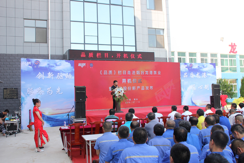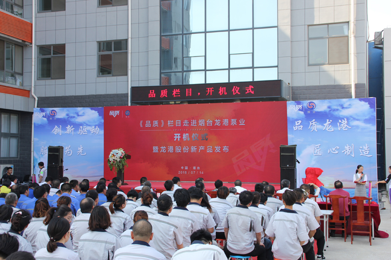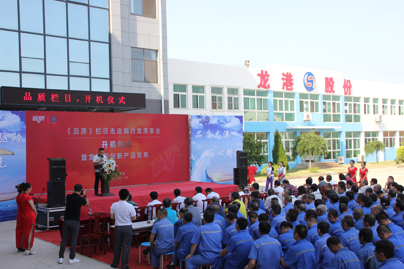 7月14日,《品質(zhì)》欄目走進(jìn)煙臺(tái)龍港泵業(yè)股份有限公司開機(jī)儀式暨龍港股份新產(chǎn)品發(fā)布儀式在龍港股份隆重舉行。煙臺(tái)高新區(qū)工委副書記劉來英,《品質(zhì)》欄目執(zhí)行制片人劉斐,高新區(qū)直有關(guān)部門負(fù)責(zé)人,國(guó)內(nèi)石化領(lǐng)域部分專家學(xué)者、高新區(qū)企業(yè)家協(xié)會(huì)企業(yè)家代表等出席儀式。