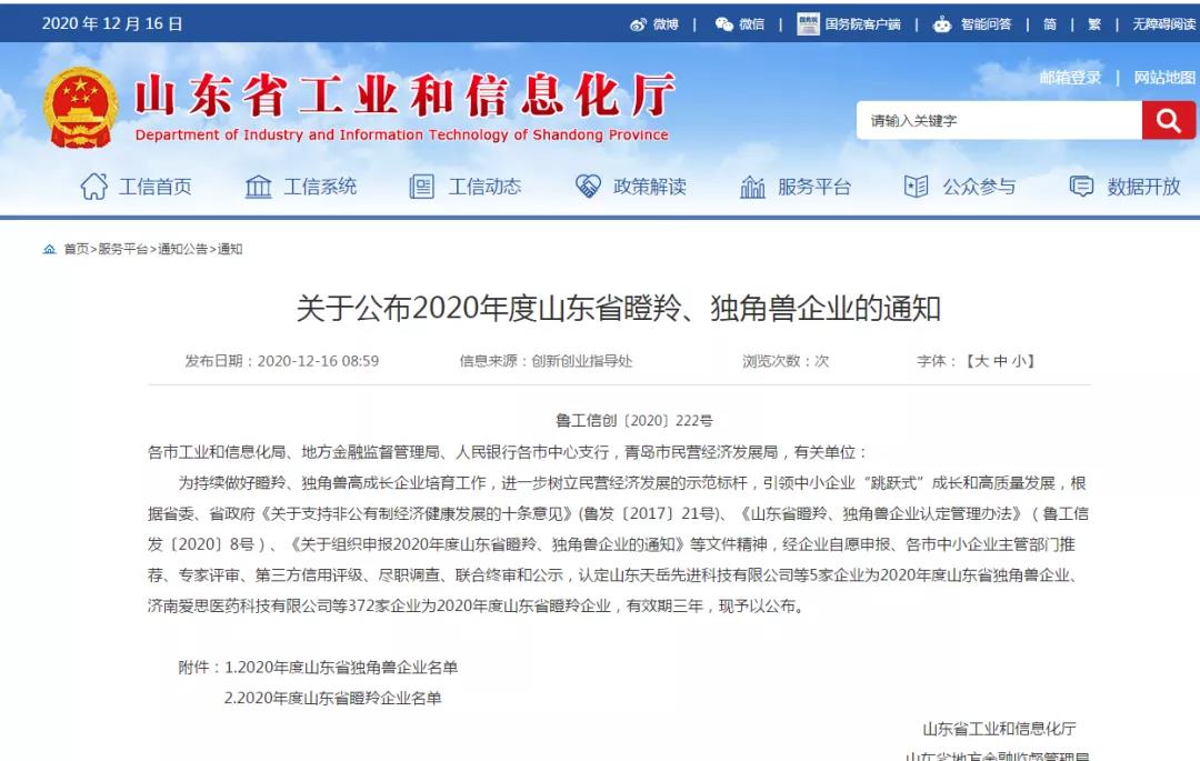 12月16日,山東省工業(yè)和信息化廳、山東省地方金融監(jiān)督管理局、中國人民銀行濟南分行印發(fā)《關(guān)于公布2020年度山東省瞪羚、獨角獸企業(yè)的通知》(魯工信創(chuàng)〔2020〕222號),公布2020年度山東省獨角獸企業(yè)、瞪羚企業(yè),煙臺龍港泵業(yè)股份有限公司入選山東省瞪羚企業(yè)。